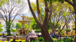 Antigua’s central park, Plaza Mayor, is a vibrant gathering spot where locals and tourists converge. Surrounded by colonial landmarks like the Palacio Real, the Town Hall, and San Jose Cathedral, the plaza is shaded by trees and dotted with benches perfect for people-watching.